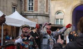 "Les Moineaux Chanteurs" - Déambulation Marchés , 2 chanteurs avec orgue de barbarie