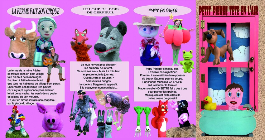 Elle propose des spectacles Jeune Public autour de la marionnette et du théâtre. Pour chaque création, les artistes élaborent histoire, marionnettes, costumes, décors, musiques, mise en scène et jeu...