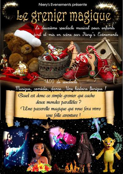 Feerys événements vous présente son nouveau spectacle musical pour enfants "le grenier magique". Découvrez les aventures de Melody à travers les différents univers et personnages qu elle rencontrera dans son périple.Simba, Mickey, Vaiana, la petite sirène, le capitaine Sparrow, et bien d autres !