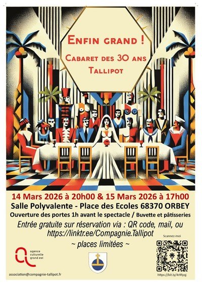 Place des ÉcolesOrbey (68370)Nous avons eu envie de partager nos souvenirs avec le public, alors nous avons rappelé les « anciens » pour préparer avec eux un projet melting-pot dans lequel nous avons mis un petit bout de ci, un petit bout de ça, un petit bout de chacune des pièces que nous avons aimé jouer. D’Alfred Jarry à Hanokh Levin, en passant par Bertolt Brecht, vous y retrouverez toute une flopée de personnages et de situations que nous avons mises bout à bout pour en faire un spectacle intitulé « Enfin grand ! Cabaret des 30 ans ».
