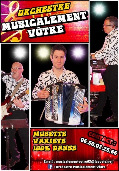 L'orchestre "Musicalement Vôtre" basé à Courpière (63120) vous propose d'animer vos après-midis, soirées dansantes, dancings, fêtes de village, comité d'animation, ccas, mariages, etc...
